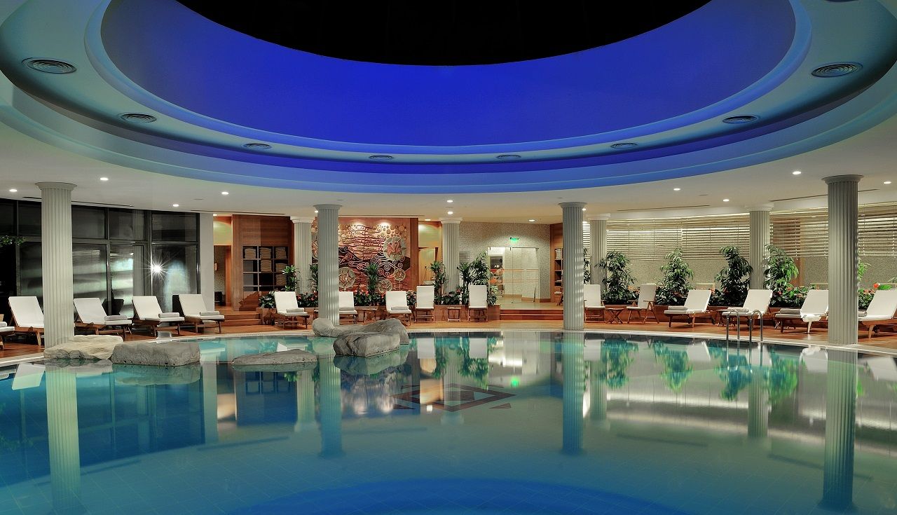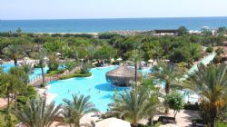 There are 4 tennis courts. Outdoor and indoor swimming pools, an Aqua park and children’s pools. The facilities and activities include: fitness center, table tennis, beach volleyball, water polo, aerobics, water gymnastics, boccia, archery, air rifle shooting, bowling, billiards and video games. Also, there is an Aqua park with slides, wind surfing, banana boat, Para-sailing, jet-ski and other water sports are available. The La Source Spa center offers a number of health and care services including Turkish bath, sauna steam bath and beauty center.