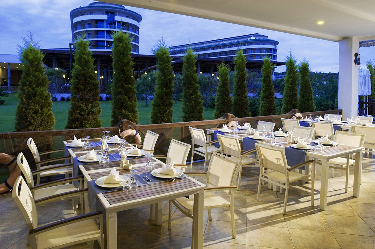 Luxurious restaurants offer extraordinary tastes from various world cuisines... Depending on availability and weather conditions, you are welcome to book table at each à la carte restaurant once in a whole stay duration. Kavaklidere red, white and rosé table wines are off ered within the all-inclusive concept but some of Kavaklidere’s selected wines, organic 4TP wines, various foreign brand wines and champagne served at all main restaurant, à la carte restaurants and at bars are subject to an additional charge. Freshly squeezed orange juice is served within the concept at breakfast and at the Vitamin bar.